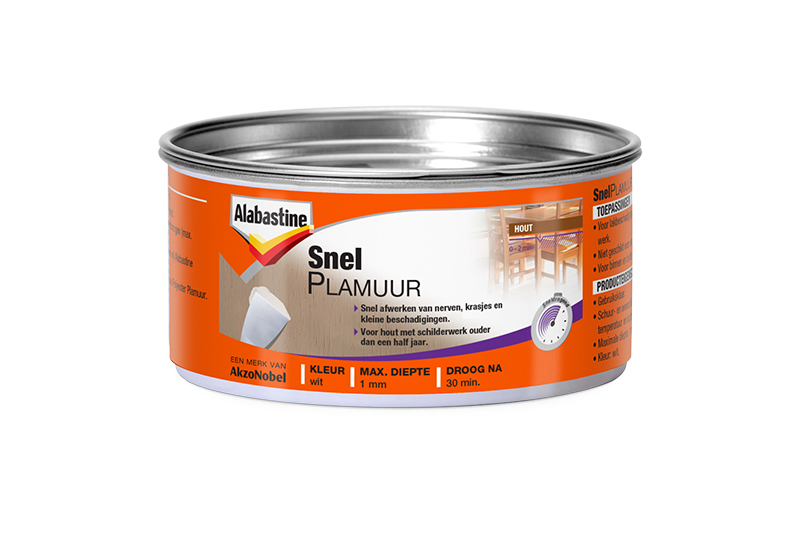 Met Alabastine Snelplamuur kan je snel nerven, krasjes en kleine beschadigingen glad afwerken. Het is toepasbaar op alle geschilderde houten ondergronden.