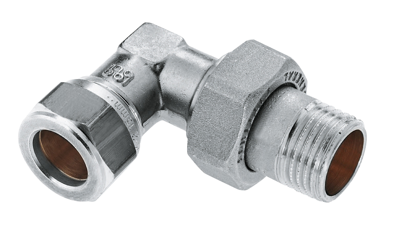 Messing & messing vertinde knelfittingen. Radiatorkoppeling haaks. Koppeling buitendraad x knel.