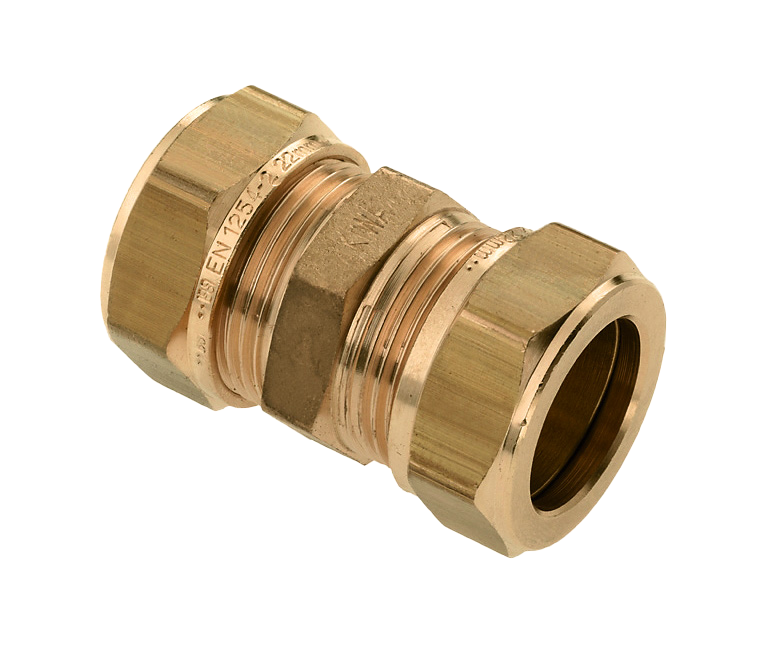 Messing & messing vertinde knelfittingen. Rechte koppeling.