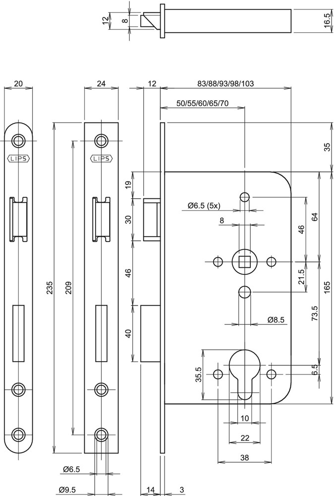 Lips cilinder insteek deurslot 242317T2460 DM60MM
