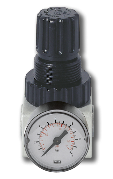 Drukregelaar traploos regelbaar tussen 0 en 10 bar met 1/4" schroefdraad aansluiting. Geleverd met manometer